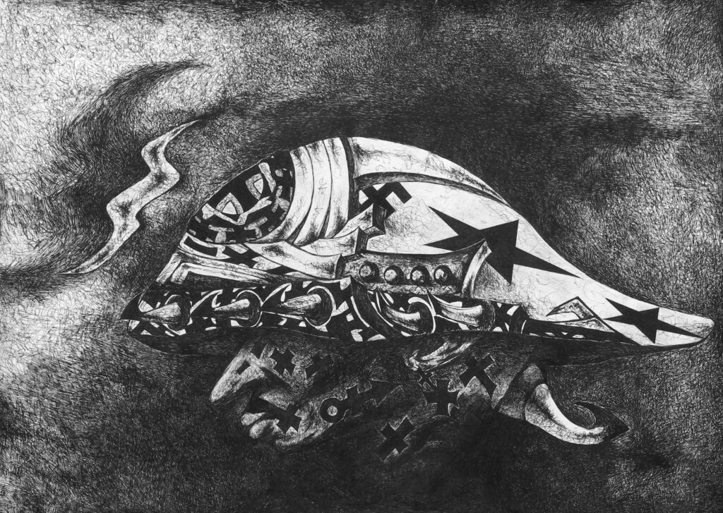 炭笔 圆珠笔 油彩  90×70cm,2000